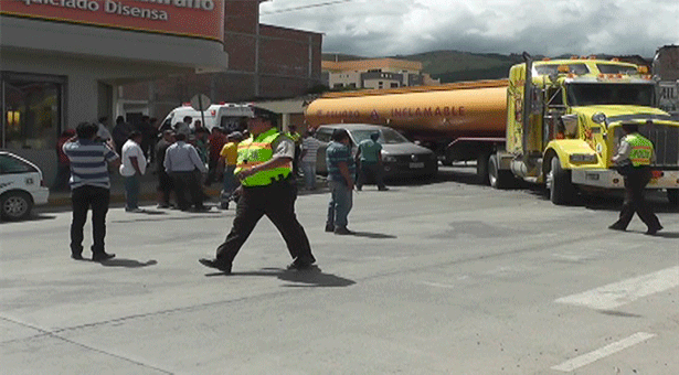 El accidente de tránsito fue registrado cerca de las 11 de la mañana de este viernes, cuando un tanquero estrechó notablemente a una camioneta Wolsvagen de Placas PCD 5212 aparentemente al intentar cruzar en la intersección de las calles 24 de Mayo y Avenida Padre Eliseo Arias Carrión, la Policía Nacional tuvo que intervenir de forma inmediata tras el percance puesto que la circulación vehicular de estas calles se vio restringida, producto del accidente, los daños materiales fueron notables en el costado izquierdo de la camioneta, se conoció que no hubieron afectados, sin embargo, la Policía Nacional realizó el informe para dar parte a las autoridades respectivas.